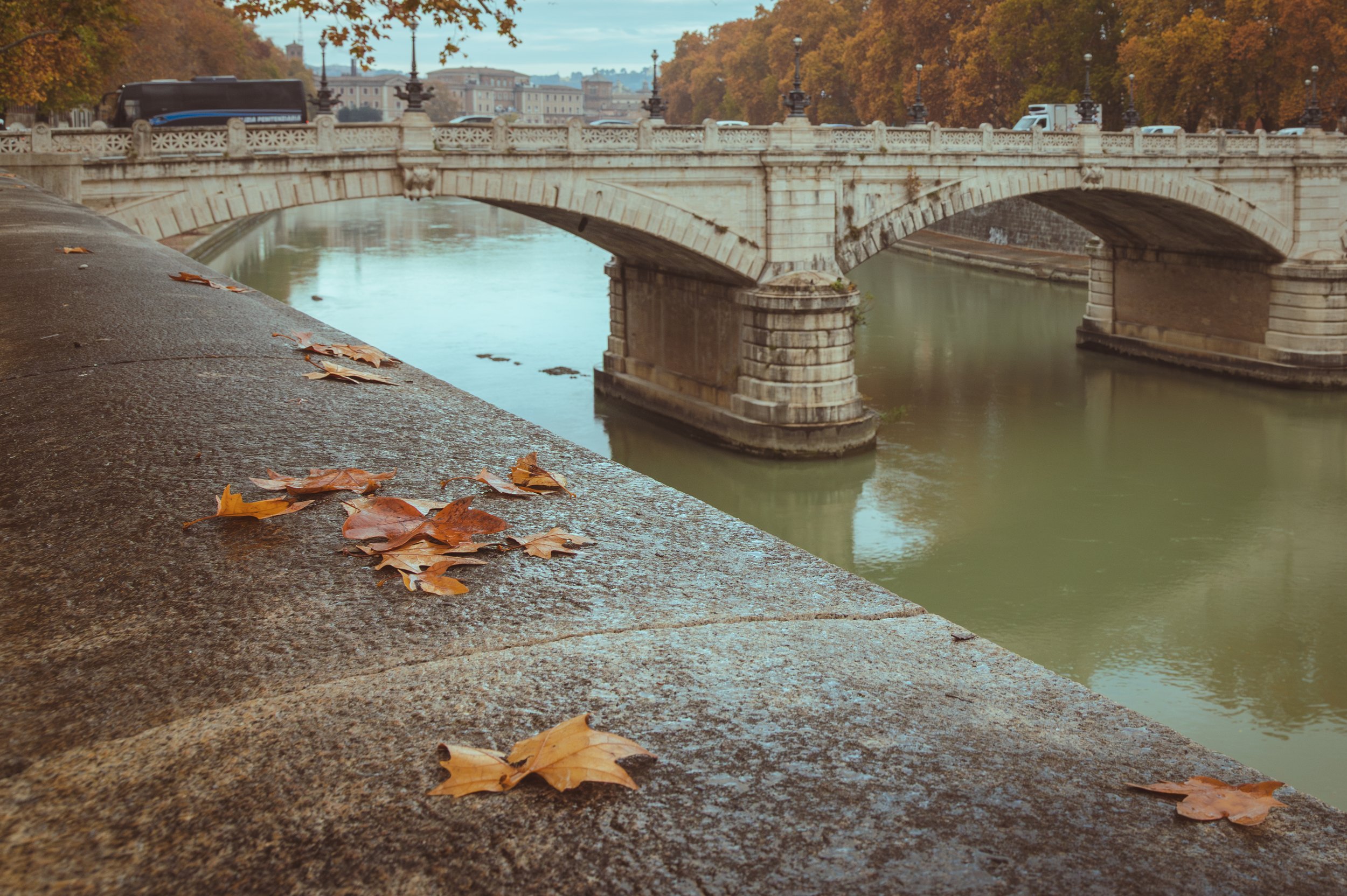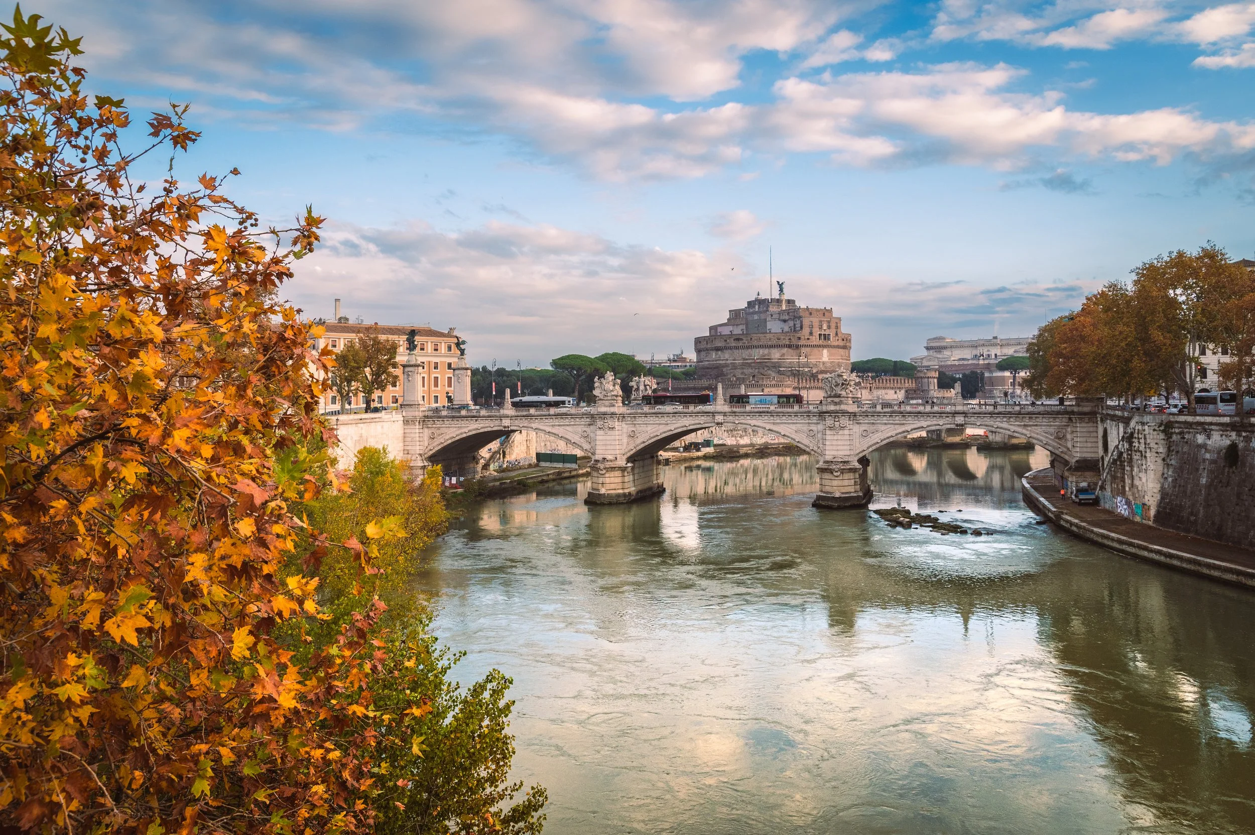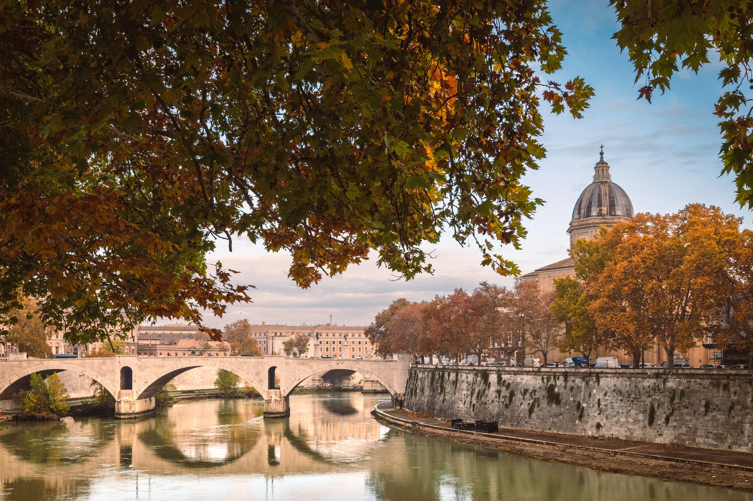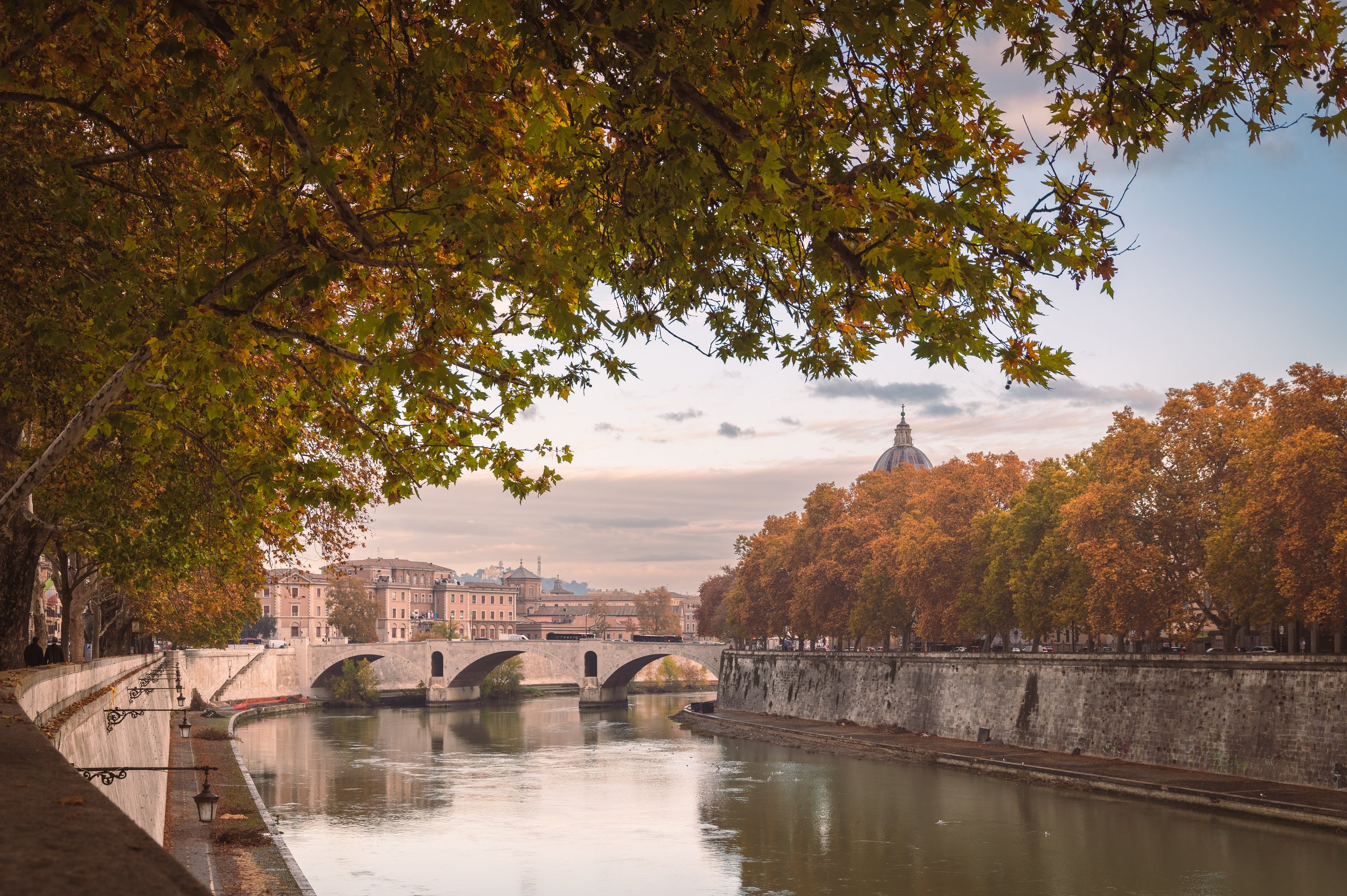 Widok na most Principe Amedeo Savoia Aosta, w kierunku północnym, podczas spaceru nad Tybrem.