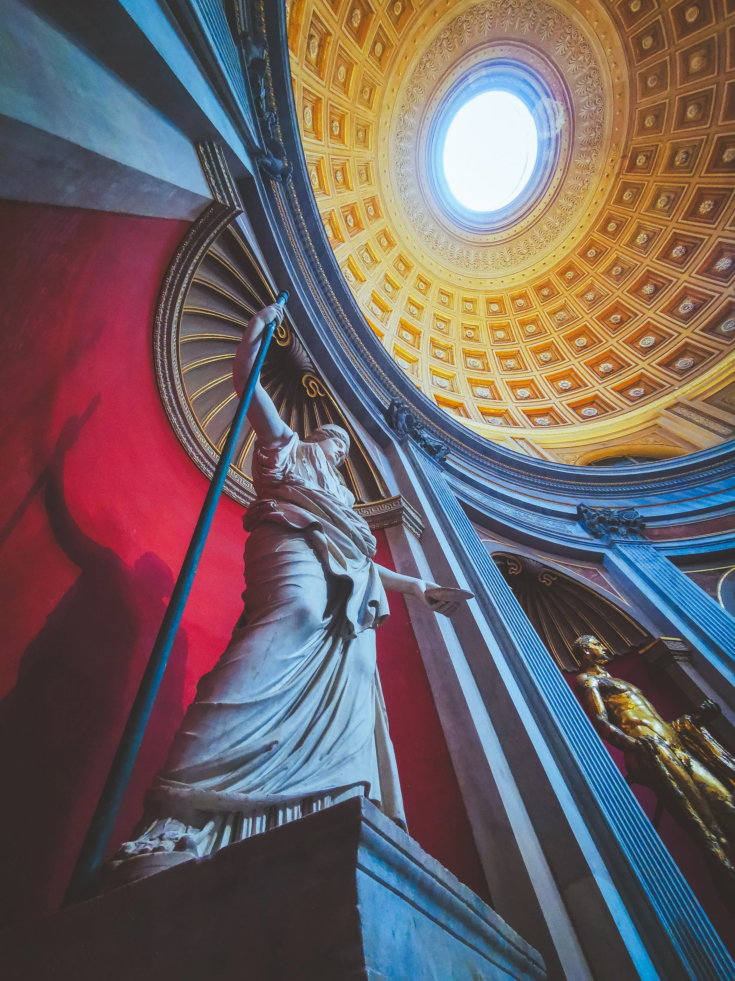 Z dachu Ołtarza Ojczyzny, jak już wspomniałem, roztacza się przepiękna panorama na cały Rzym. Wjeżdża się na sam dach windą i spędza na nim tyle czasu, ile dusza zapragnie. Po jednej stronie Colosseum, po drugiej Watykan. Stare i nowe. Te historyczne przejście z jednej kultury w drugą, jednego wyznania w drugie ma jednak wizualnie jakąś spójność i jest nią architektura. Starożytny Rzym obecny jest w każdym detalu Bazyliki Św. Piotra, a posągi i popiersia władców Rzymu oraz przedstawienia postaci z rzymskiej mitologii są dziś wystawiane w oszałamiających ilościach w Musei Vaticani. Stare przeszło w nowe, albo raczej poprzednie w następne. Wniosek jest tylko jeden: design wygrał z religią.